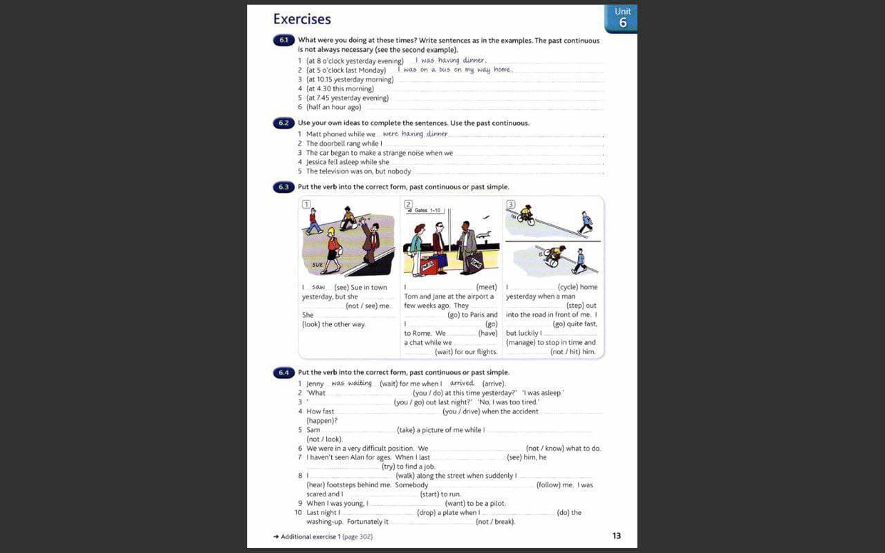 2) -was doing my homework; -were having a traffic accident; -was talking about her lifestyle ;was watching it