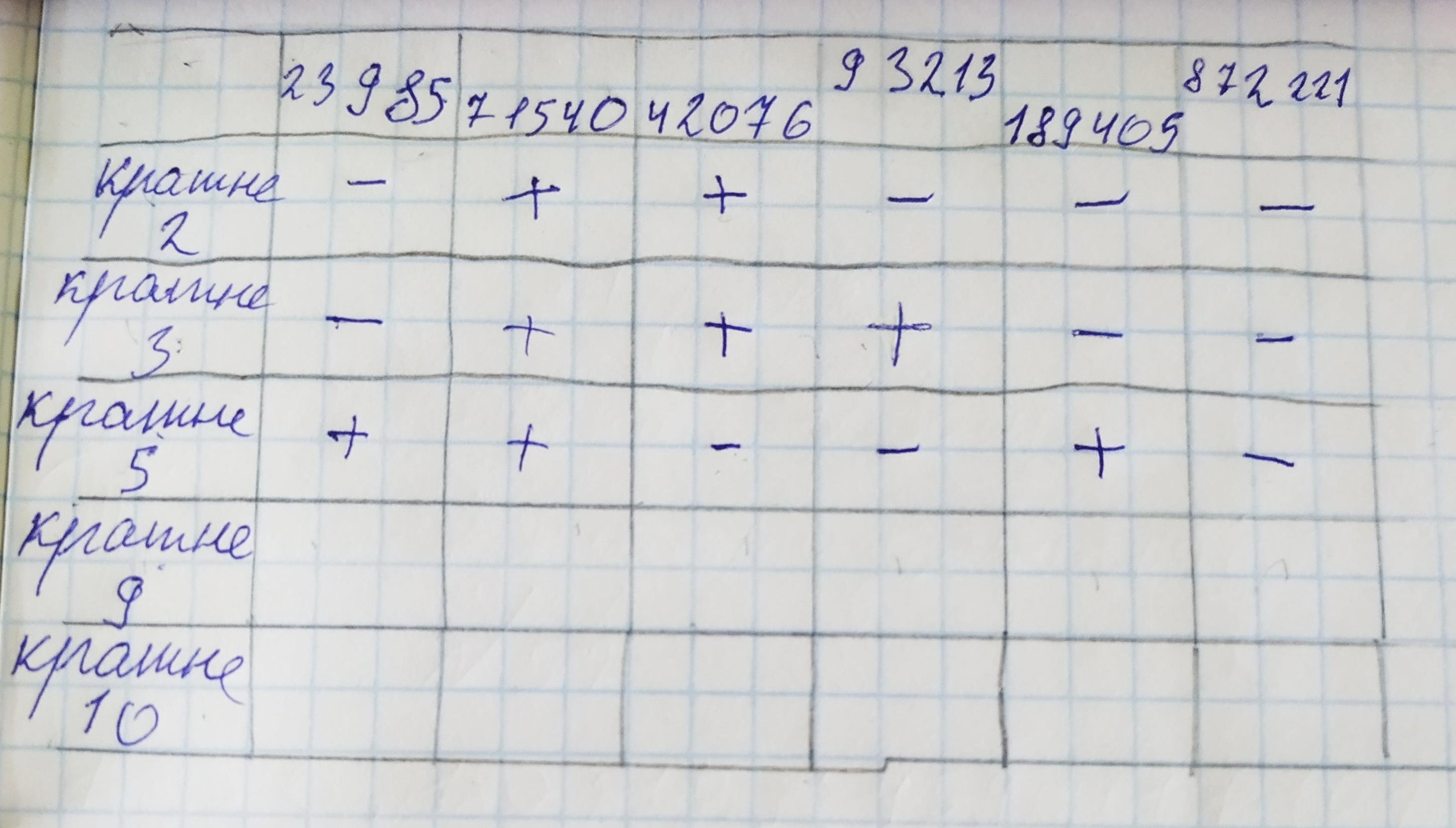 Які числа кратні 9 і 10 з 23985; 71540; 42076; 93213; 189405; 872221.