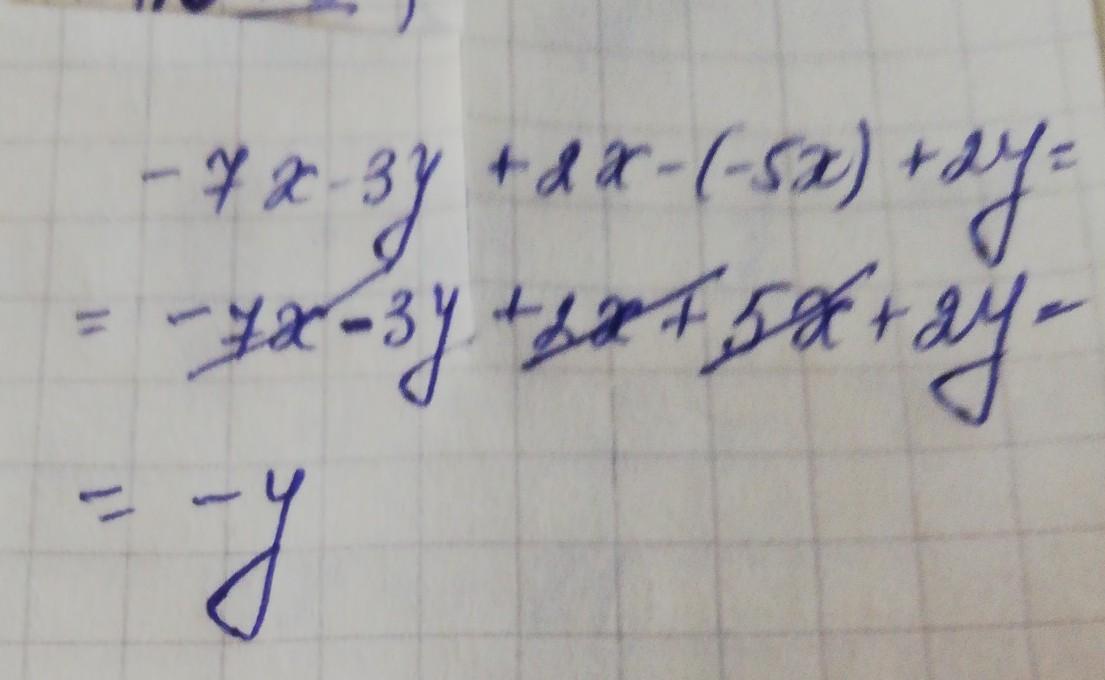 Якому з наведених виразів тотожно дорівнює вираз -7x-3y+2x-(-5x)+2y?