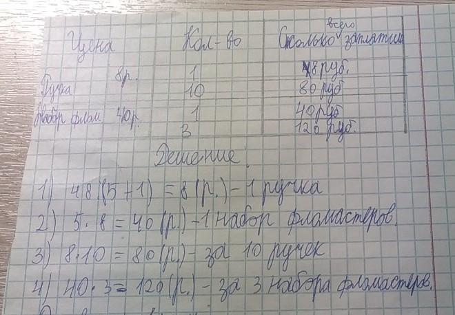 сделай таблицу по заданию: 41. Реши задачу, Вычисли и запиши ответ. За ручку и набор фломастеров заплатили 48 руб. Набор фломастеров в 5 раз дороже ручки. Сколько стоит ручка? Сколько стоит набор фломастеров? Сколько нужно заплатить за 10 таких ручек? За з таких набора фломастеров? На какое требование задачи можно ответить помощью следующего выражения: 48 : (5 + 1) .5?