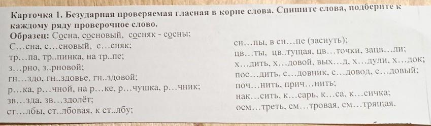 Проверочные слова: тропка, зёрна, гнёзда, речка, звёзды, столб, сноп, цвет, ход, посадка, починка, косит, осмотр.