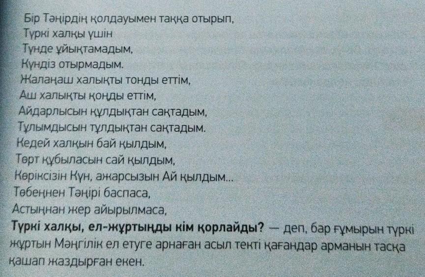 Бұл жолдар Күлтегін жырының үзіндісінен алынған. Және мұнда Түрік халқы жеңіске жетіп, қалай көркейгені жайлы айтылған.