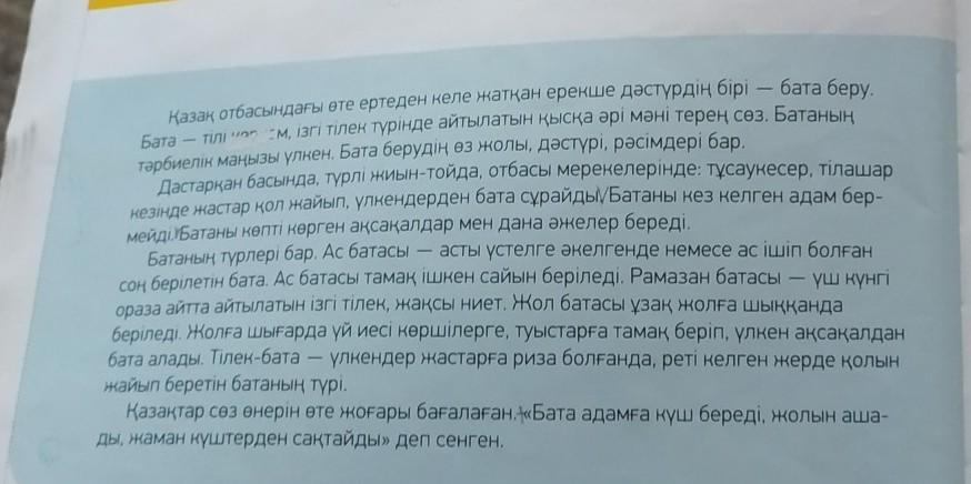 ЖАзылым -тапсырма. 5 Мәтіннің мазмұны бойынша төмендегі тақырыптарды ретімен орналастырып, жоспар құр.