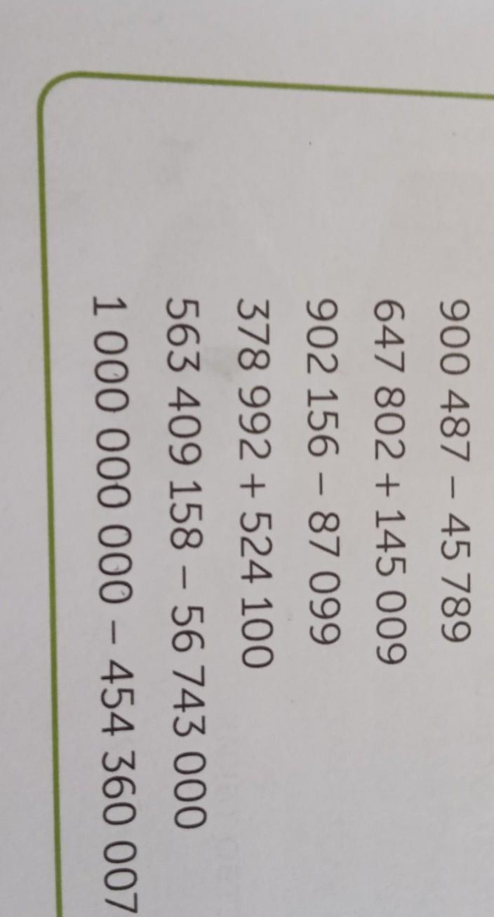 Вычисли и проверь. 900 487 - 45 789 647 802 + 145 009 902 156 - 87 099 378 992 +524 100 563 409 158 - 56 743 000 1 000 000 000 - 454 360 007в столбик