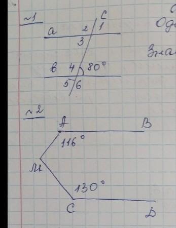 Задача 1: Дано: a II b, c - січна, один з кутів 80 градусів. Знайти: кут 1,2,3,4,5,6