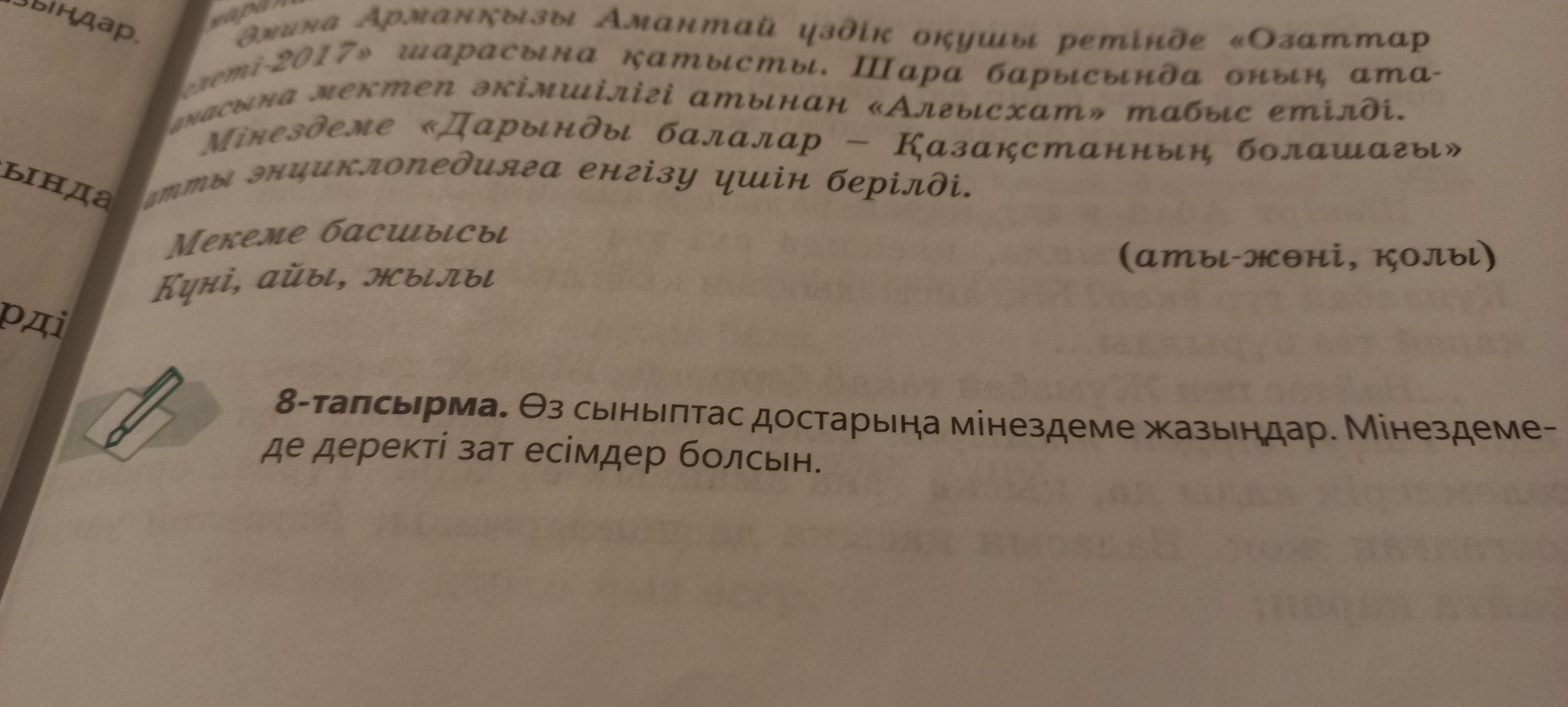 зат есимдер:ким,не , кимдер, нелер, Сенин досынын сипатын жазасын