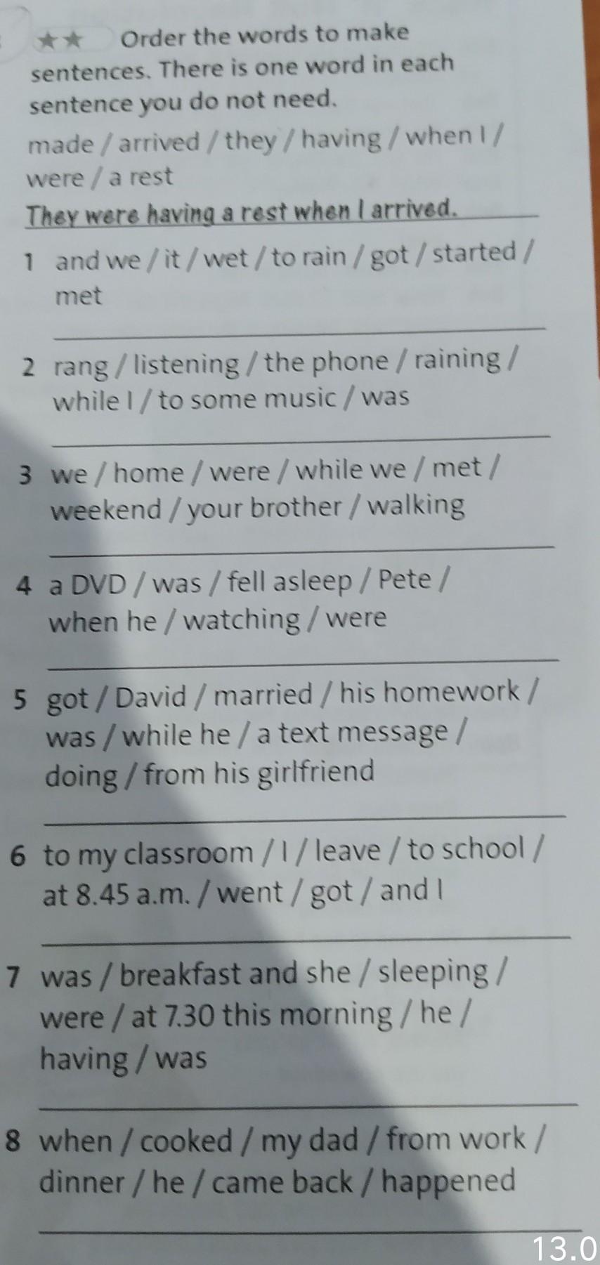 Order the words to make sentences. There is one word in each sentence you do not need.