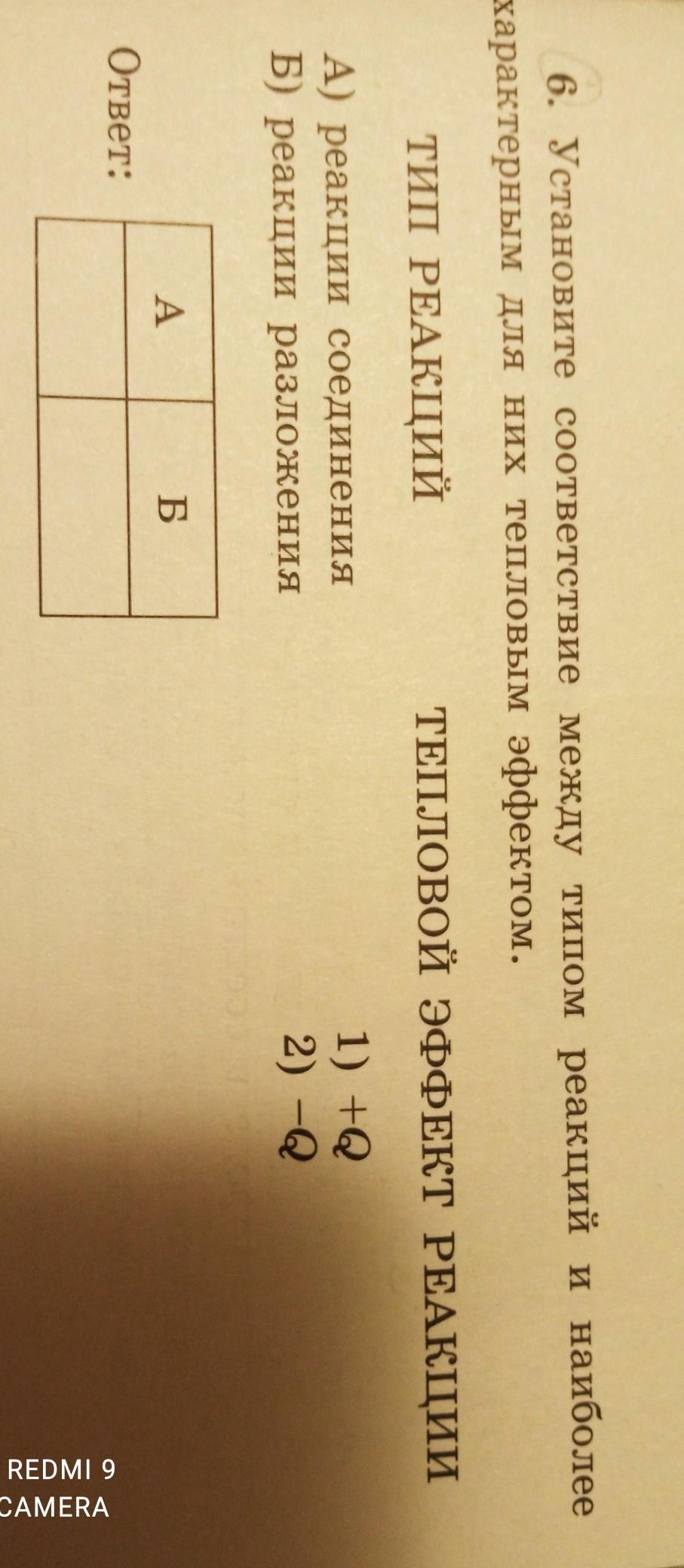 установите соответствие между типом реакций и наиболее характерным для них тепловым эффектом. Пожалуйста помогите