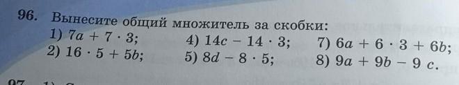 1)7(а+3) 2)5(16+b) 4)14(с-3) 5)8(d-5) 7)6(a+3+b) 8)9(a+b-c)