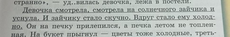 Девочка смотрела, смотрела на солнечного зайчика и уснула. И зайчику стало скучно. Вдруг стало ему холодно.