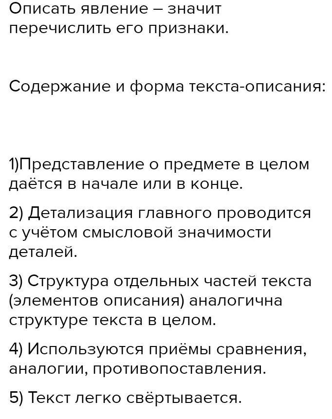Описание - ето композиционная форма, которую используют в литературоведении и лингвистике для подробной характеристики предметов или явлений.