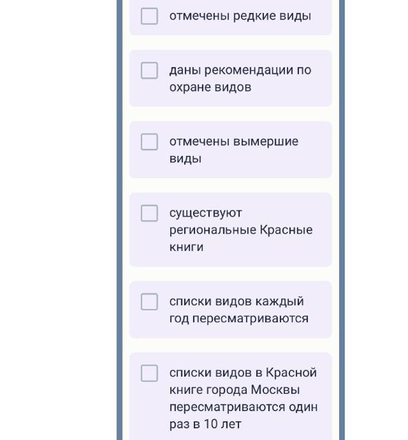 Выберите верные утверждения которые относятся к красной книге. Варианты ответов в фото