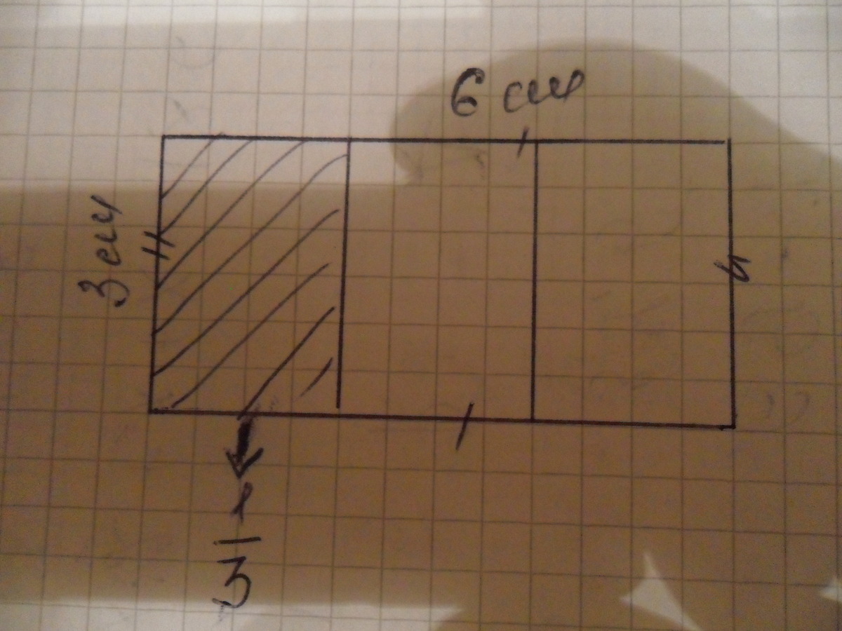 Начерти в тетради прямоугольник со сторонами 3 см и 6 см. Раскрась его третью часть и вычисли ее площадь. Нужен чертеж