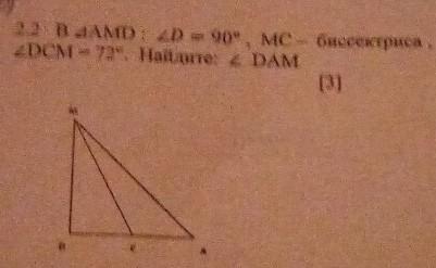 треугольник dmc прямоугольный угол м будет равнятся 18 значит угол м с другой стороны тоже 18