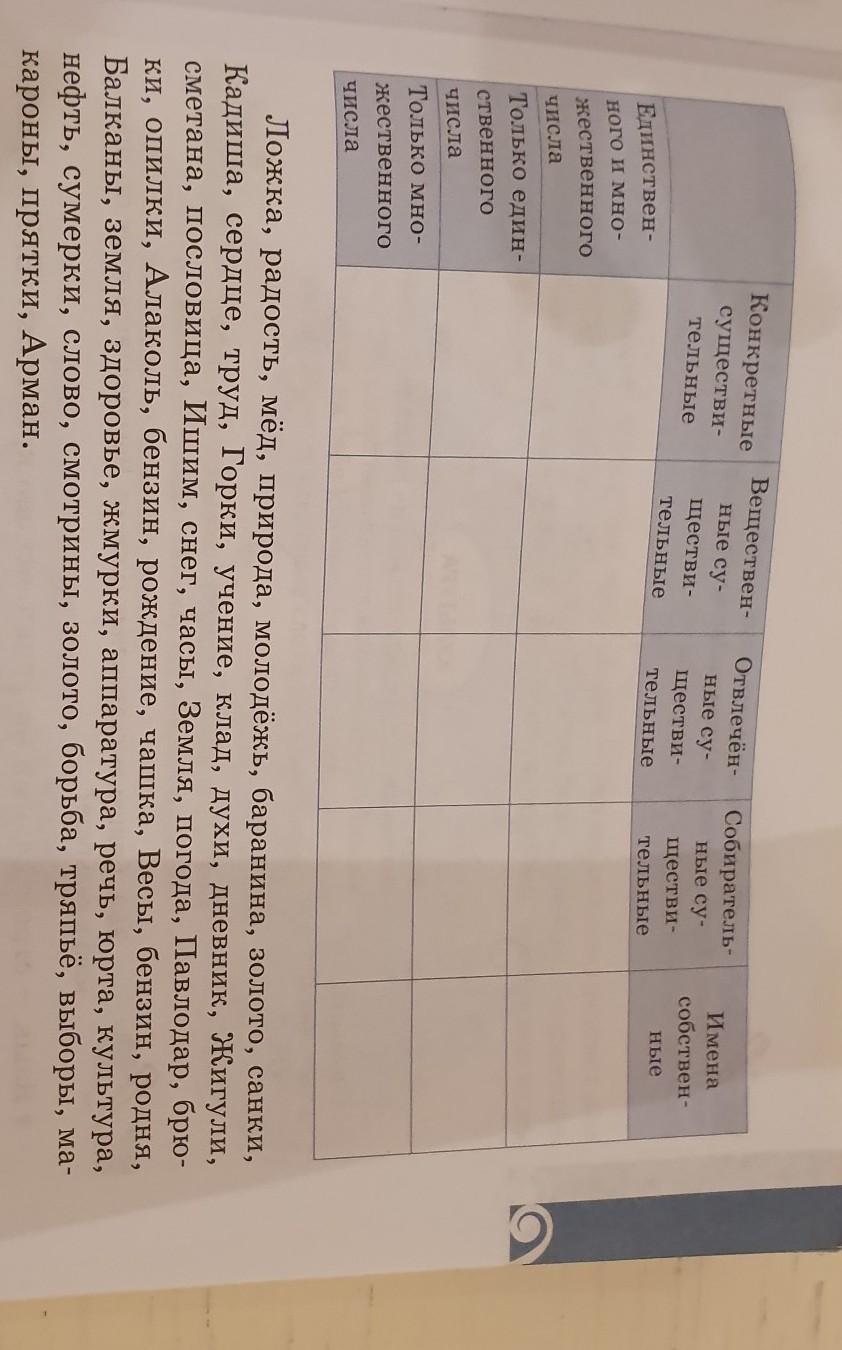35А. Запиши данные существительные в таблицу. Существительные каких разрядов имеют форму только единствен- ного или только множественного числа?