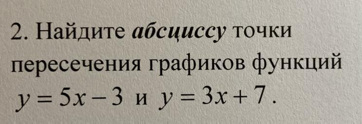 Абсцисса точки пересечения равна 5