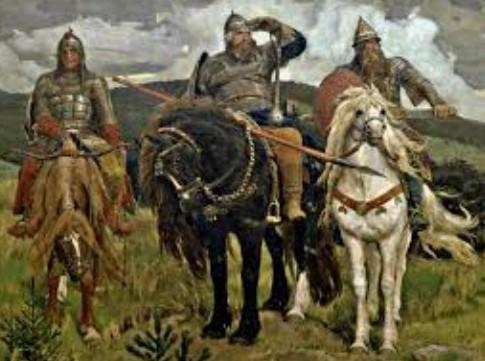 Ліворуч стоїть коричневий кінь, нахилений до землі, який відкриває погляд на воїна, що сидить на ньому. можливо так хотіли показати його незначність у данній ситуації.