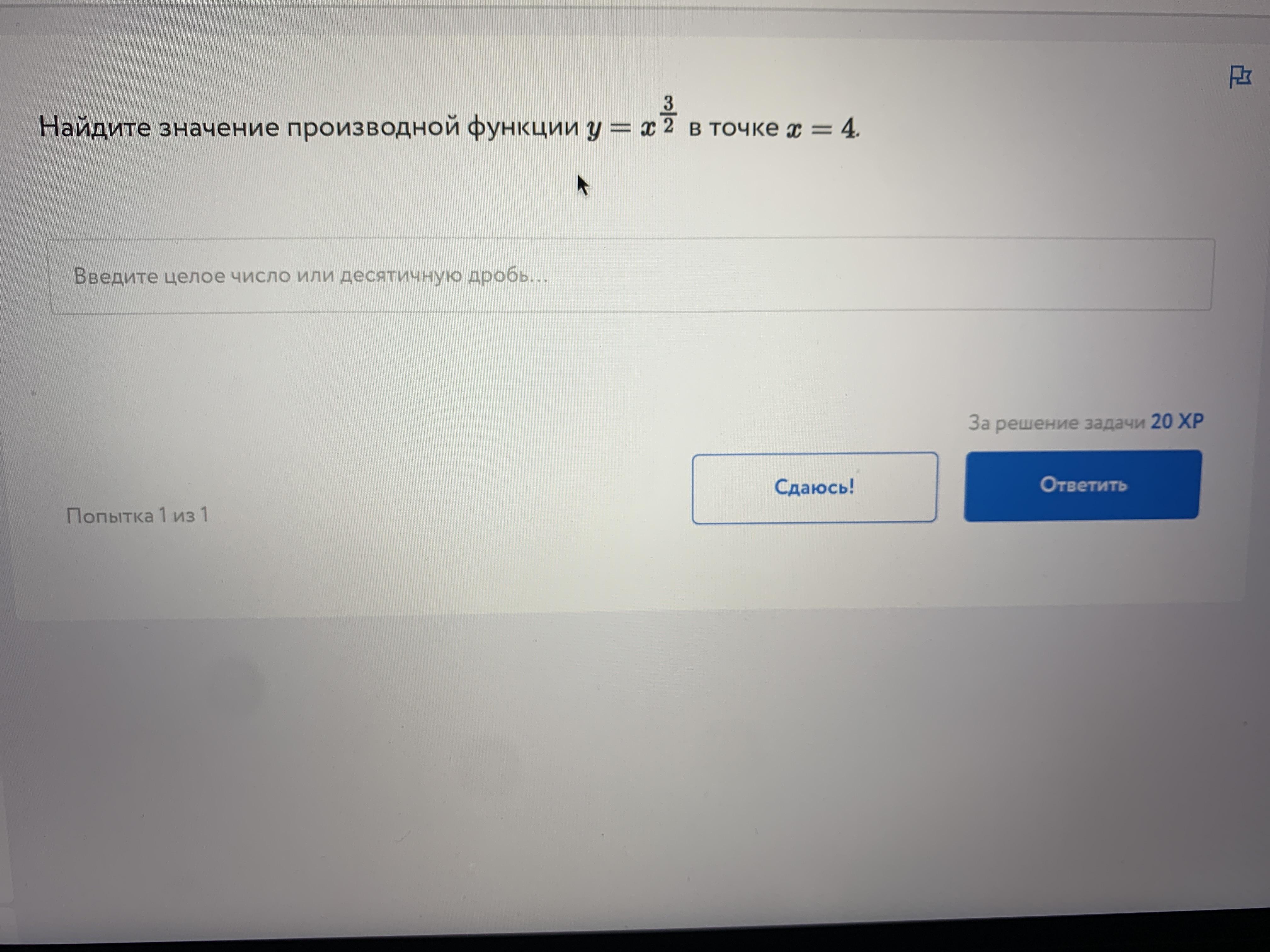 =3 производная будет (3/2)*√х ну и подставим 4 будет 3/2*√4=3