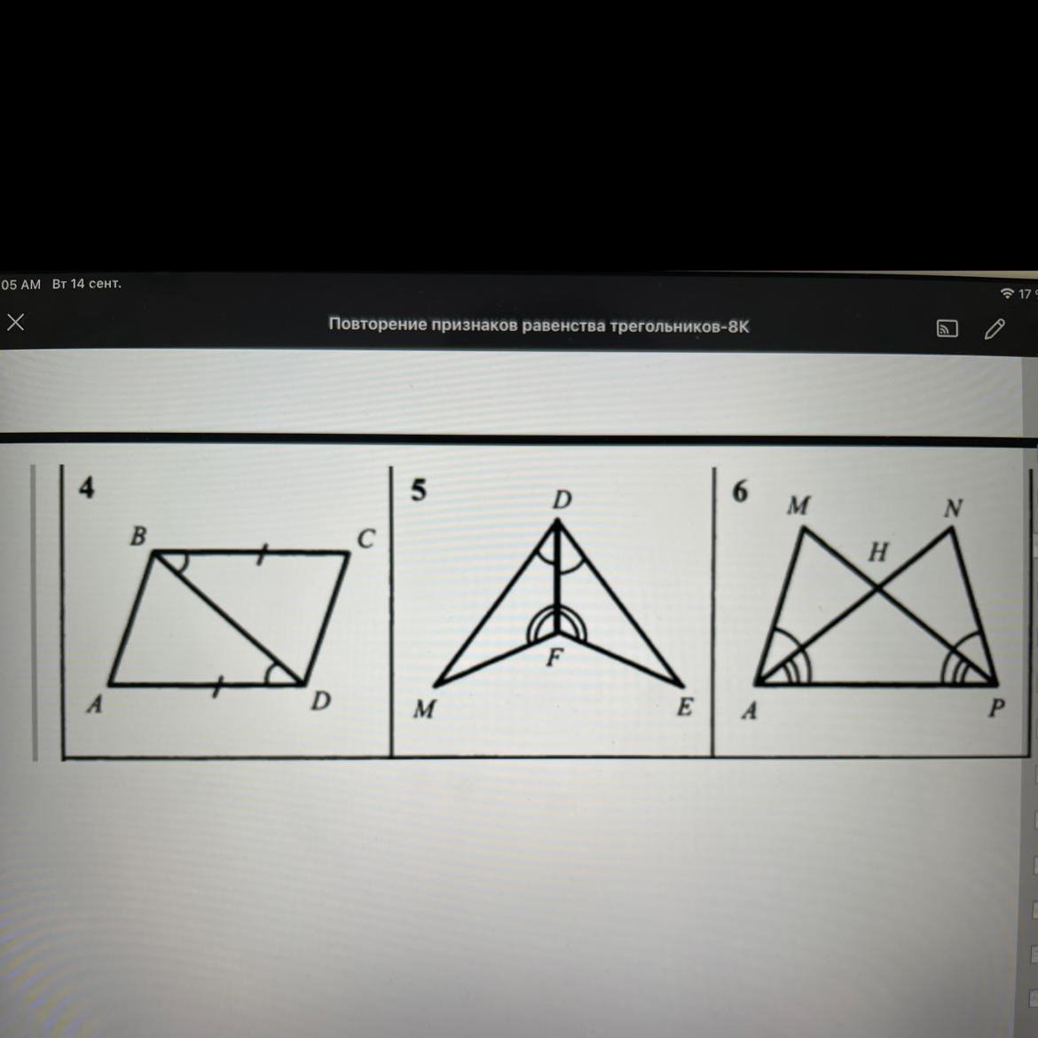 6) треугольник AMP=ANP, и треугольник AHM=PHN, так как угол А равен углу Р и угол МРА равен углу NAP