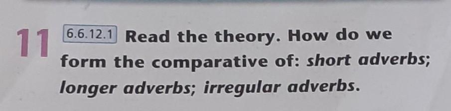 Read the theory.How do we form the comparative of:short adverbs; longer adverbs; irregular adverbs