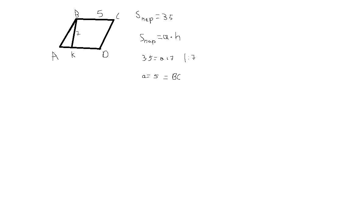 Площадь параллелограмма ABCD равна 35. Найдите сторону ВС параллелограмма,