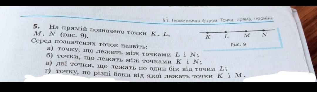 на прямій позначено точки K, L, M, N серед позначених точок назвіть: