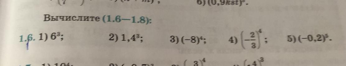 1) 6*6*6=216 2) 1,4*1,4*1,4=2,744 3) -8*(-8)*(-8)*(-8)=4096 5) -0.2*(-0.2)*(-0.2)*(-0.2)*(-0.2)= -0.00032