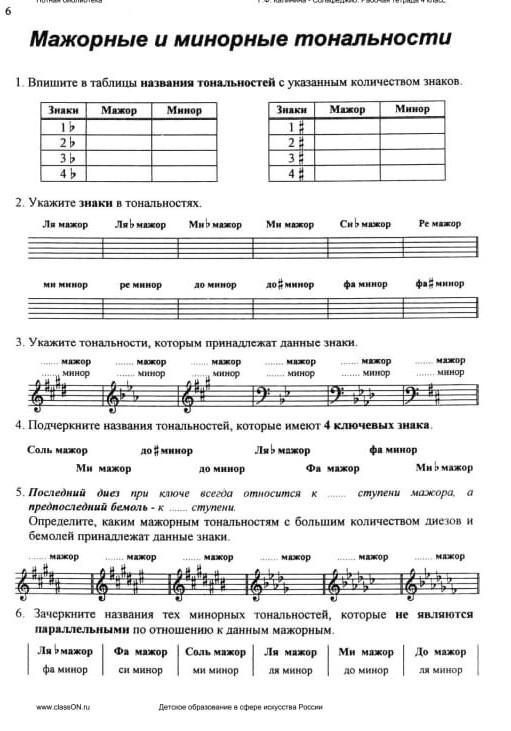 1. Впишите в таблицы названия тональностей с указанным количеством знаков. Можете помочь со всеми пж