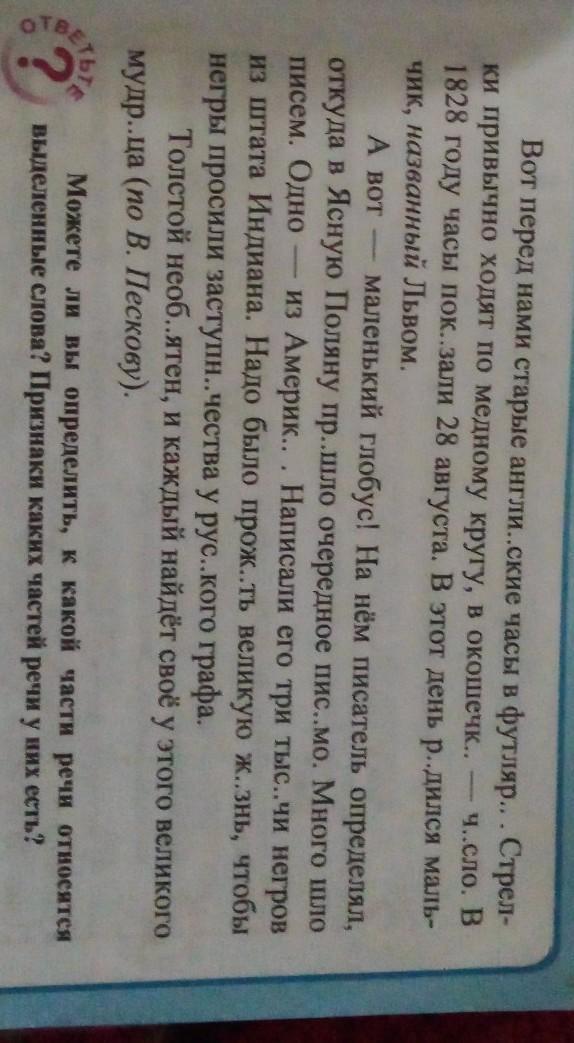 Спишите текст вставляя пропущенные буквы. Какой частью речи является каждое слово? Сделайте морфологический разбор существительного, прилагательного, глагола, числительного, местоимения, наречия по вашему выбору.
