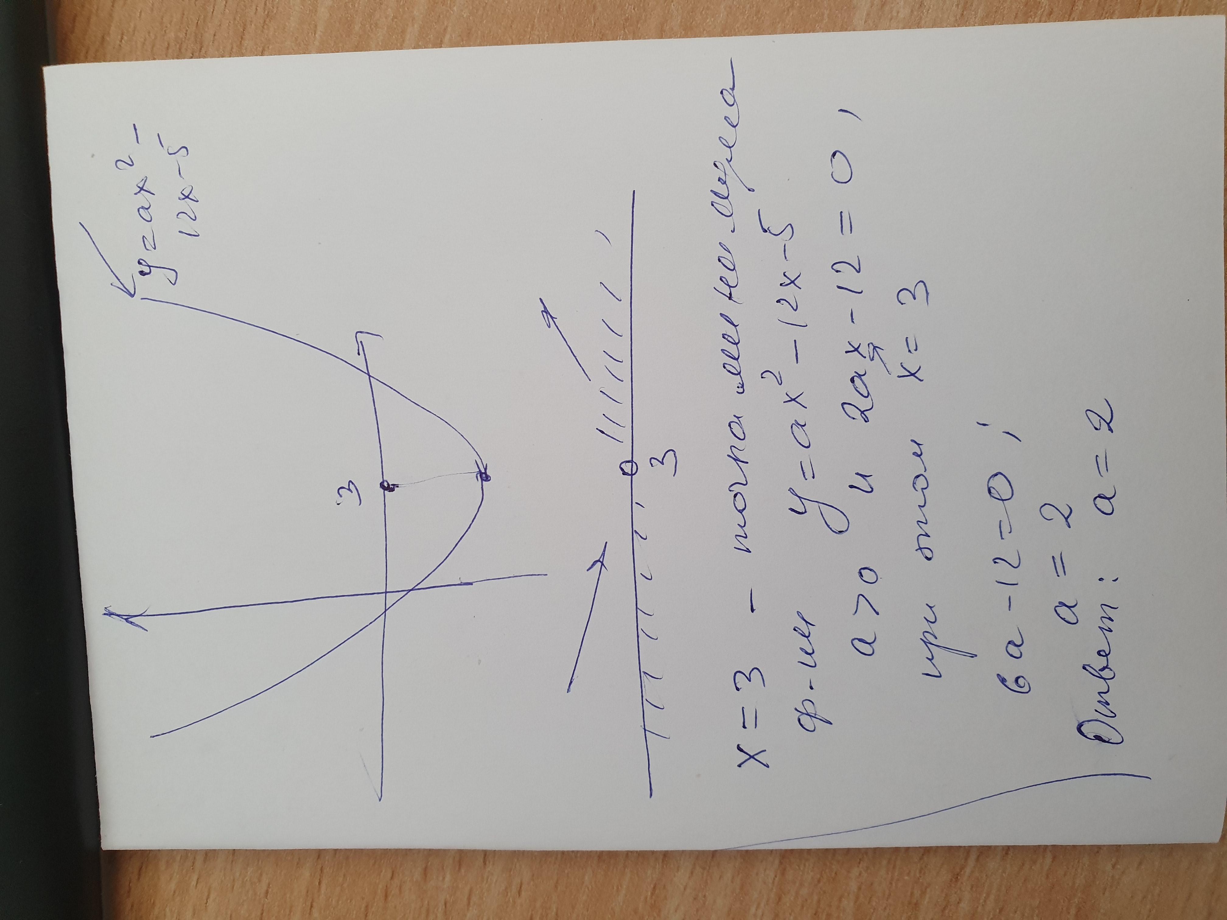 Найди значение a, при котором функция y = ax2 – 12x – 5 убывает на промежутке (–∞; 3] и возрастает на промежутке [3; +∞).