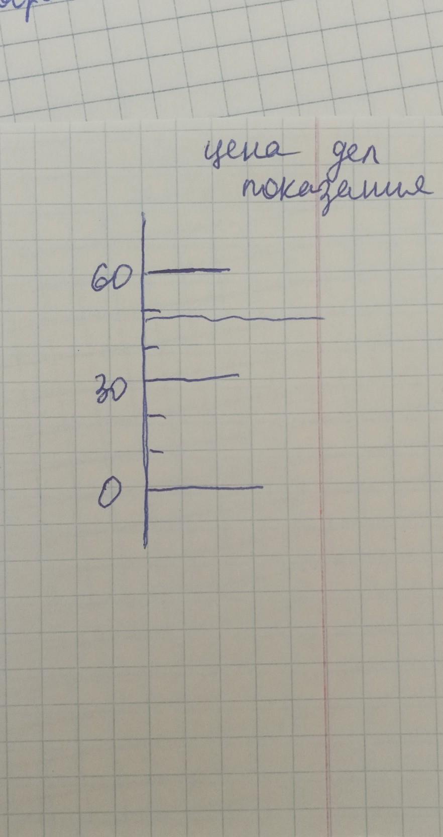 До отметки 60 имеем 6 делений. Значит цена деления 60/6=10