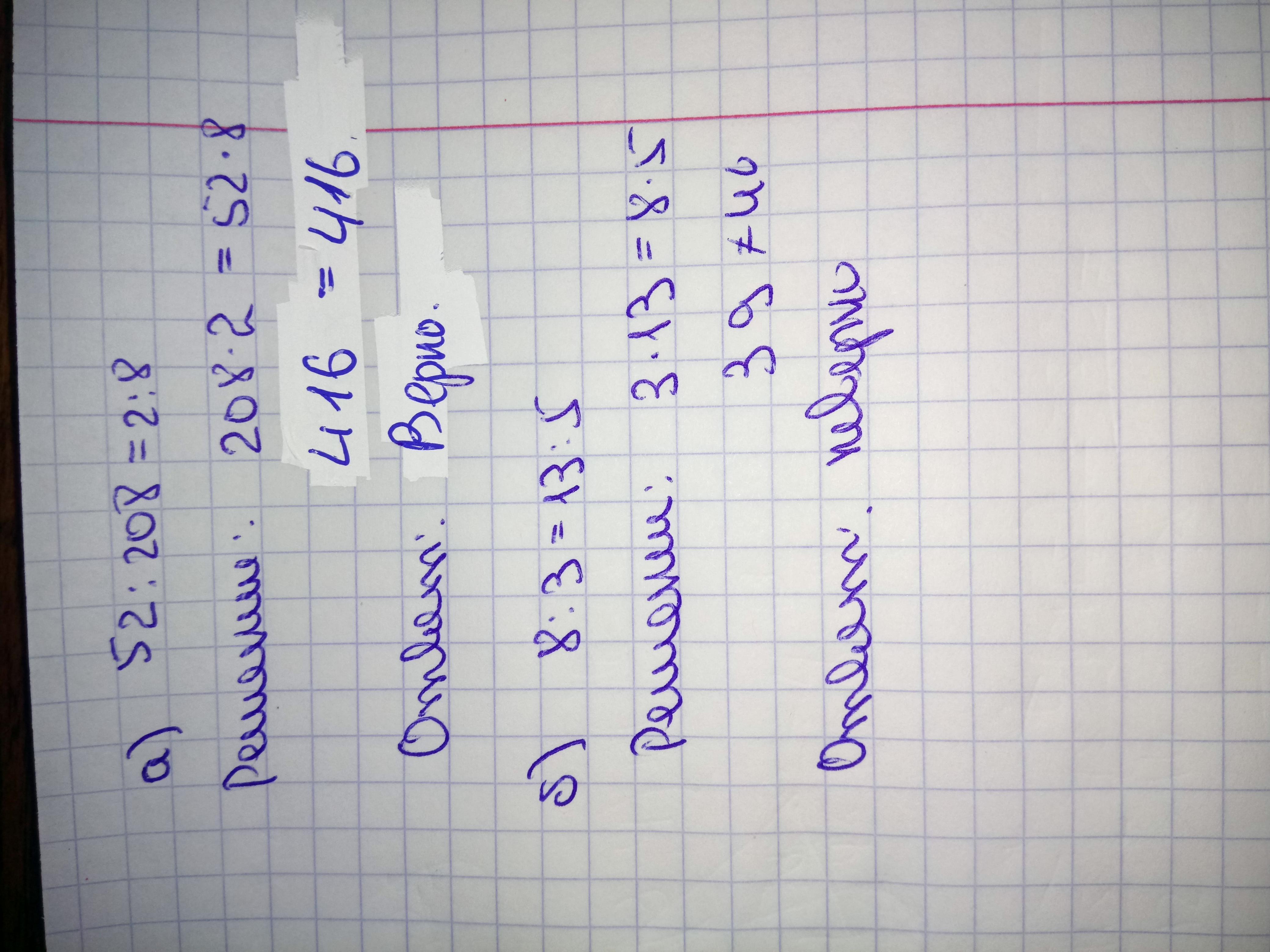 52/208=2/8 скоротимо ліву частину на 26, отримаємо:2/8 ліва частина однакова з правою