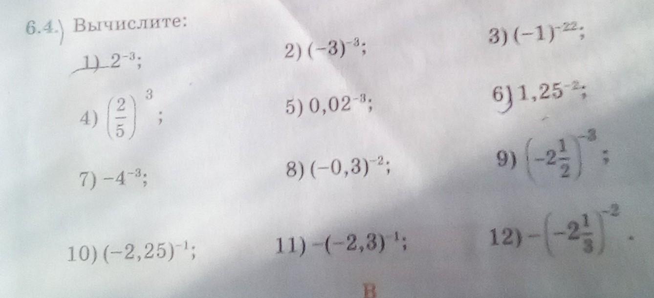 ( - 2 \frac{1}{2}  {}^{ } ) {}^{ - 3}  =  \frac{1}{(2 \frac{1}{2} ) {}^{3} }  =  \frac{1}{( \frac{5}{2}) {}^{3}  }  =  \frac{8}{125}  = 0.064