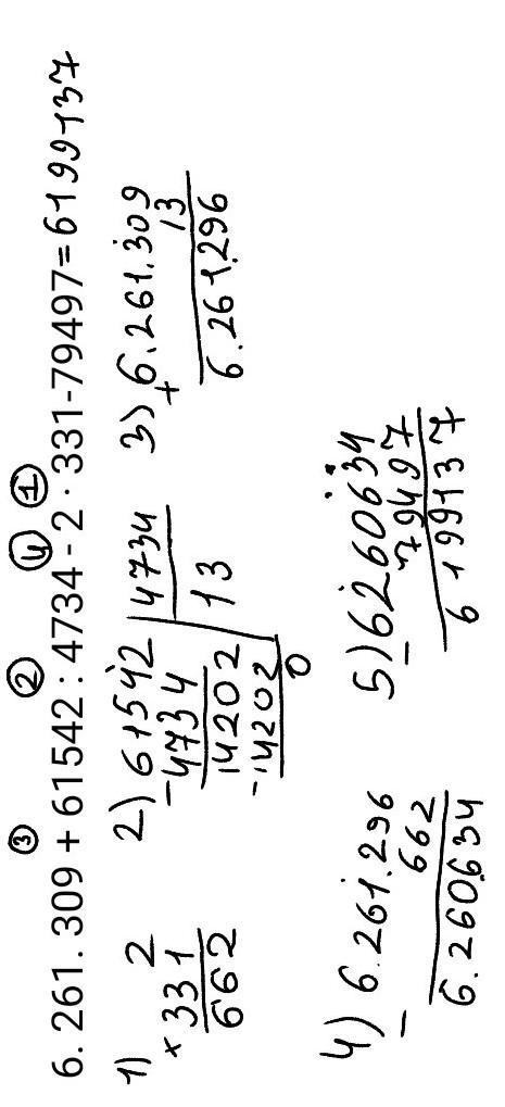 6. 261. 309 + 61542 : 4734 - 2 · 331-79497; помогите пожалуйста решить с столбиками