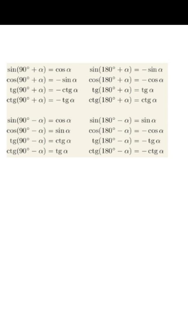 tg(180−α)∗cos(180−α)∗tg(90−α)