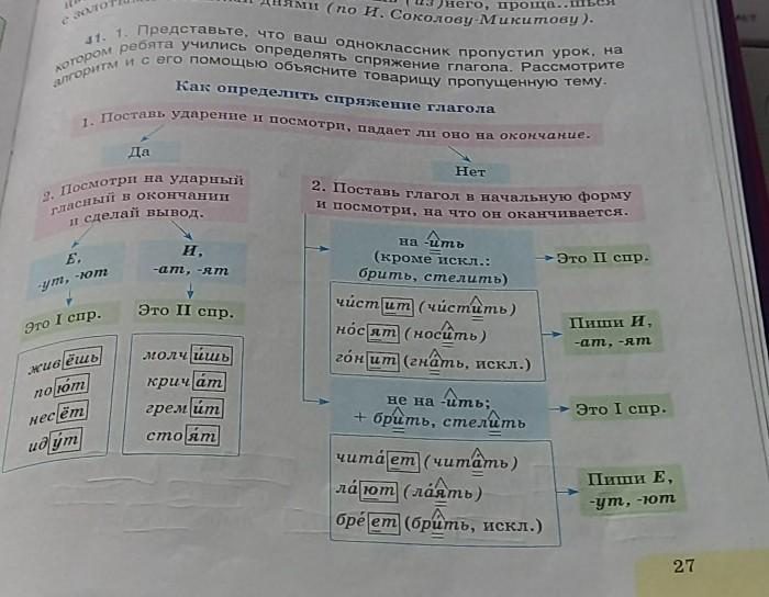 глаголы окончившие на е или ут ют 1 спряжение,а глаголы заканчиваются на и или ат ят 2 спряжение и есть глаголы исключения