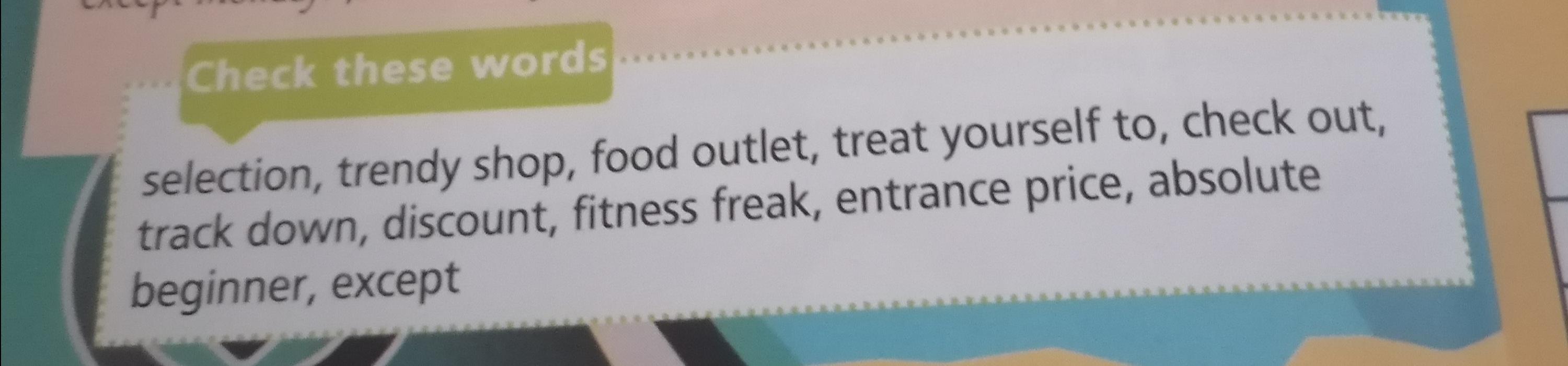 вибір, модний магазин, пункт харчування, побалуйте себе, виїдьте, відстежте, знижка, фітнес -фрік, ціна входу, абсолютний новачок, окрім