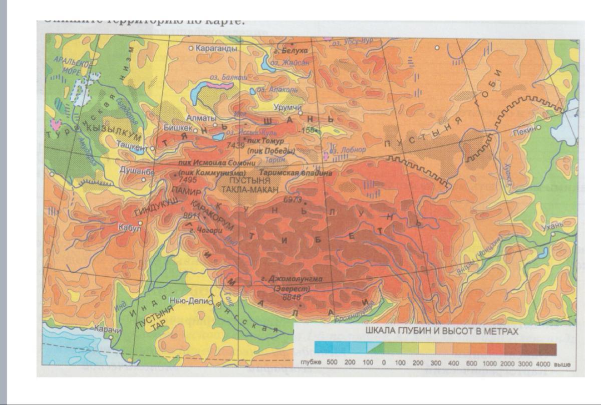 Какие горные системы нанесены на карту?