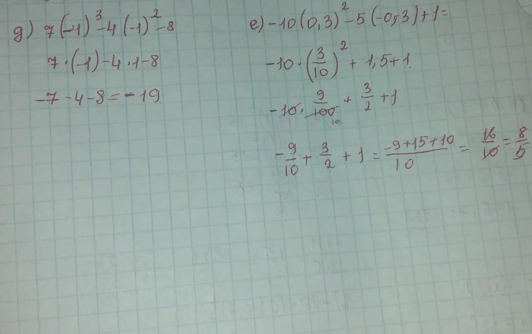 д) 7×(-1)³-4×(-1)²-8=