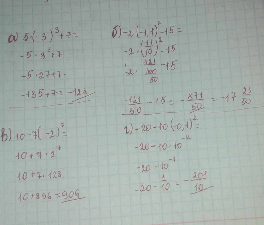 а) 5×(-3)³+7=