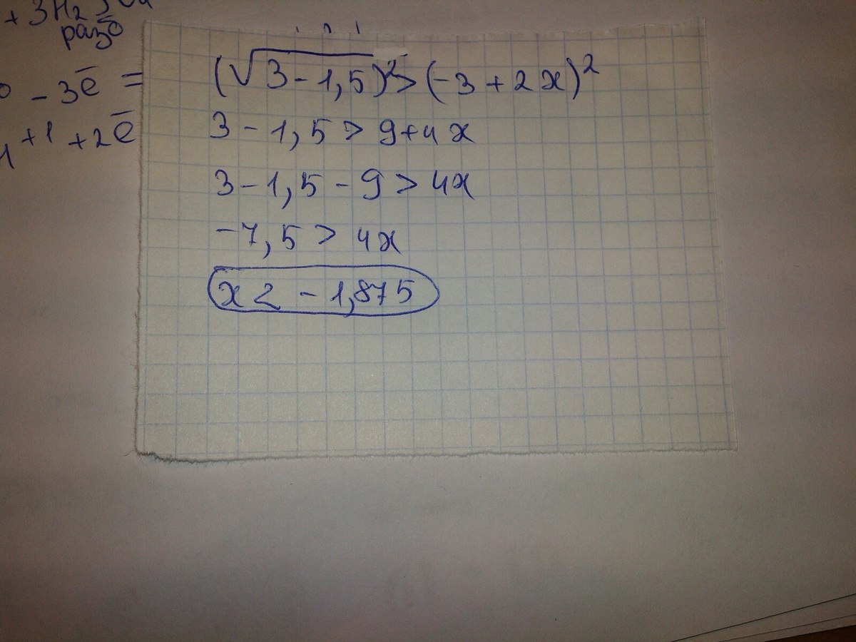 ответ должен быть (от минуса бесконечности до 1,5),но как решить я не поняла...запуталась