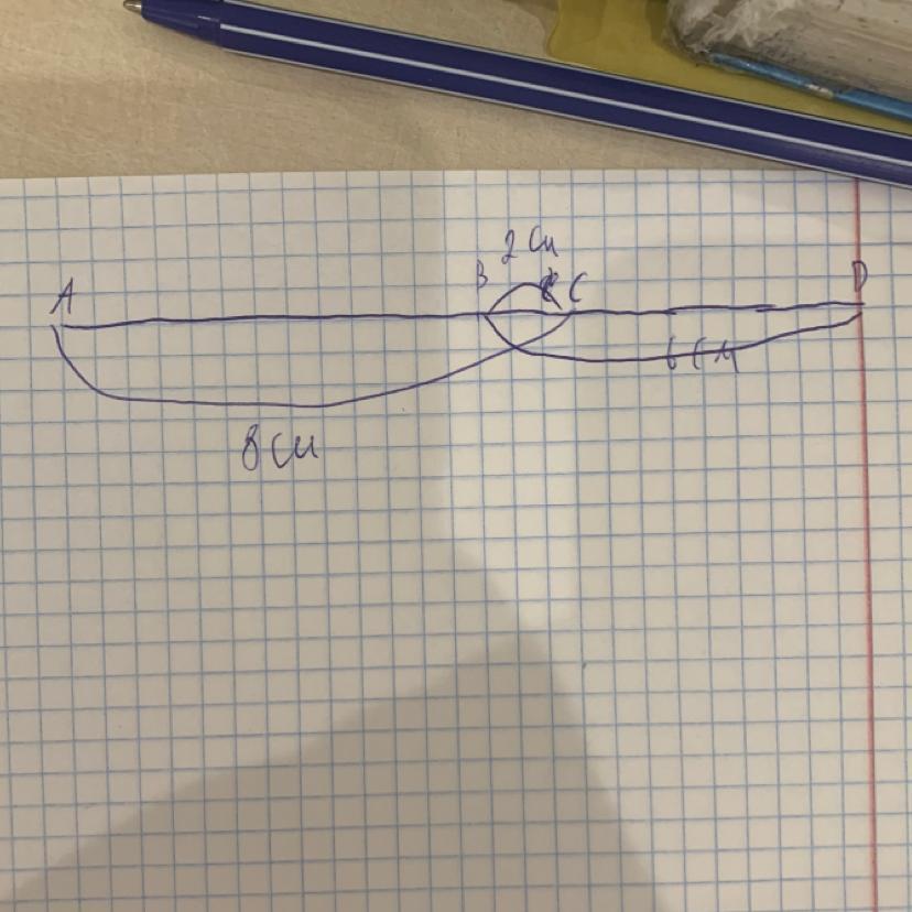 В Известно, что AC = 8 см, BD = 6 см, ВС = 2 см (рис. 27). Найдите длину отрезка AD. Изв