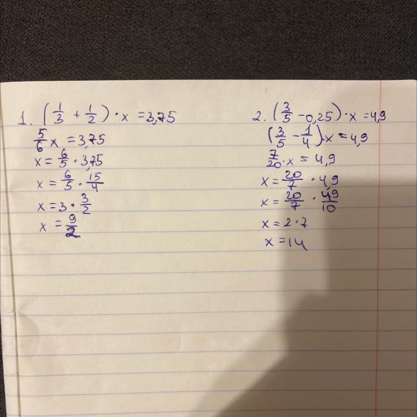 раз я не первая ответила, напишу здесь 2) ³/⁵-0,25)*4,9 ; (0,6-0,25) *х=4,9 ; 0,35х=4,9 ; х=14.