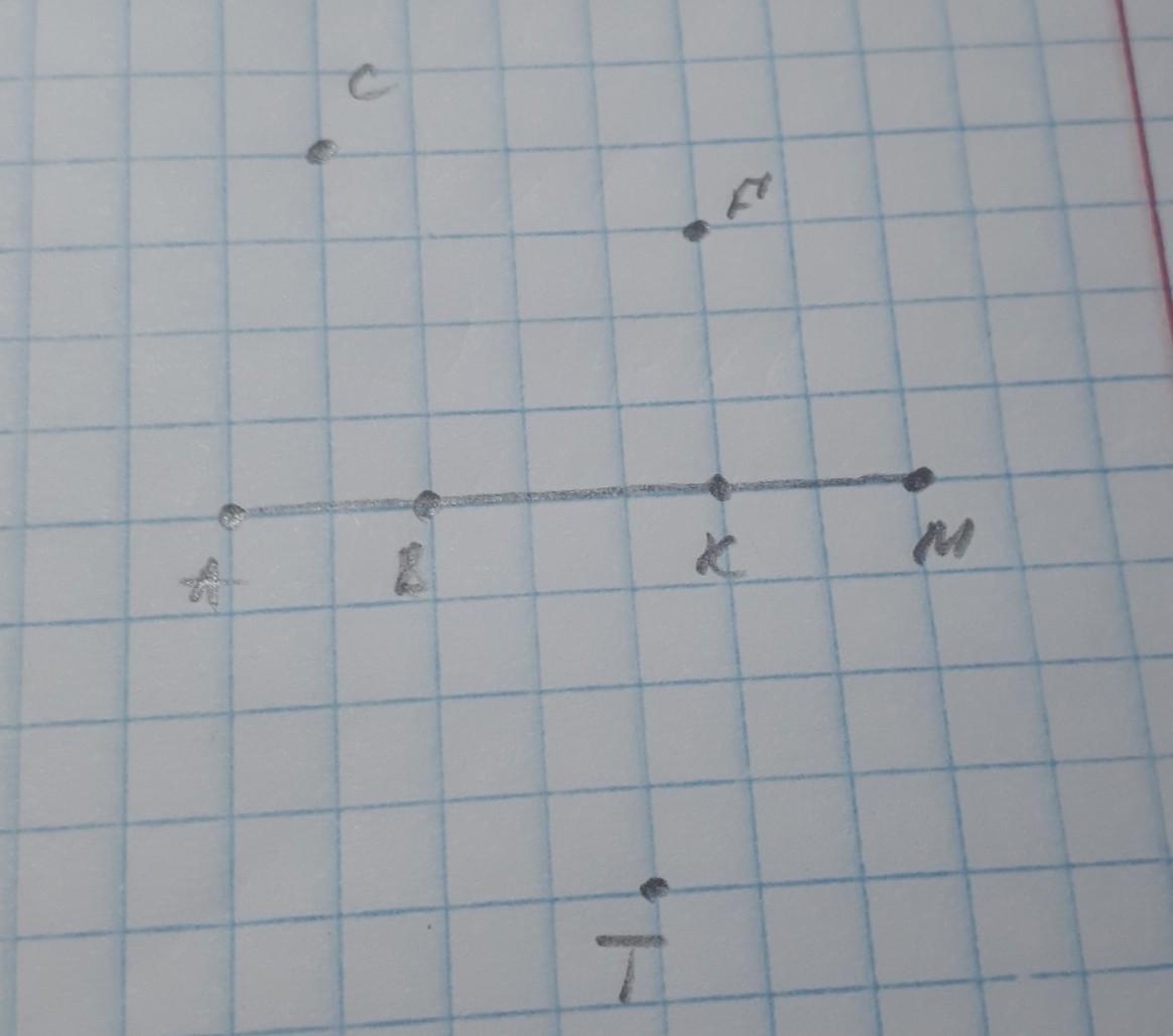 Начерти Прямую и отметьте 3 точки, не лежащие на ней, и 4 точки , лежащие на ней. Обозначьте точки буквами