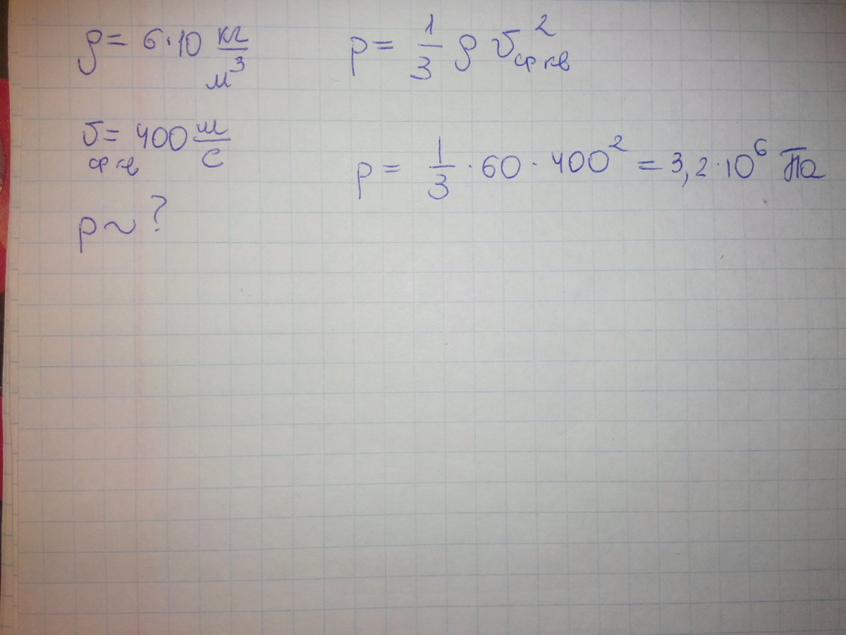 Який тиск чинить газ густиною 6*10 кг/м3 на стінки посудини якщо середня квадратична швидкість руху його молекул 400/с