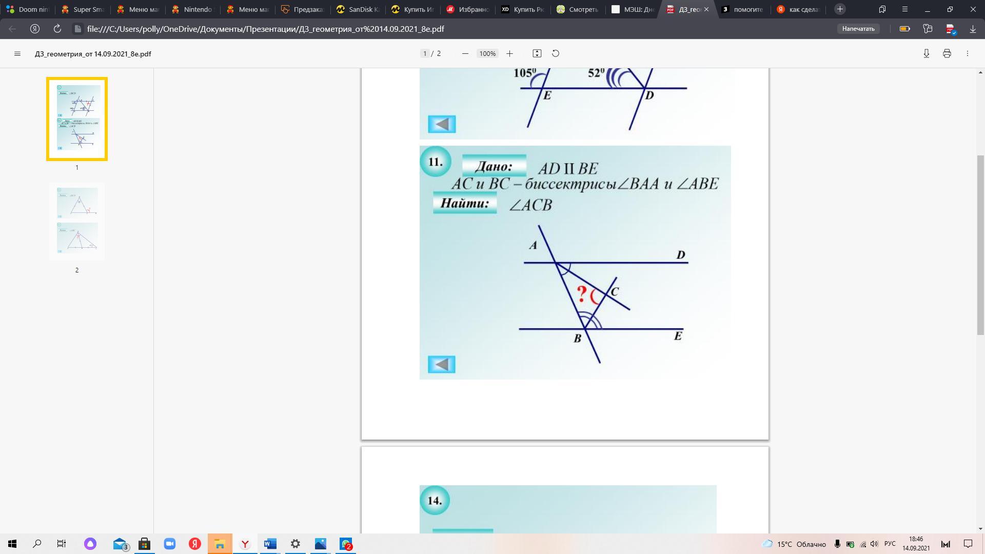 1) Так как AD║BE , то ∠DAB+∠ABE=180° (сумма односторонних углов)