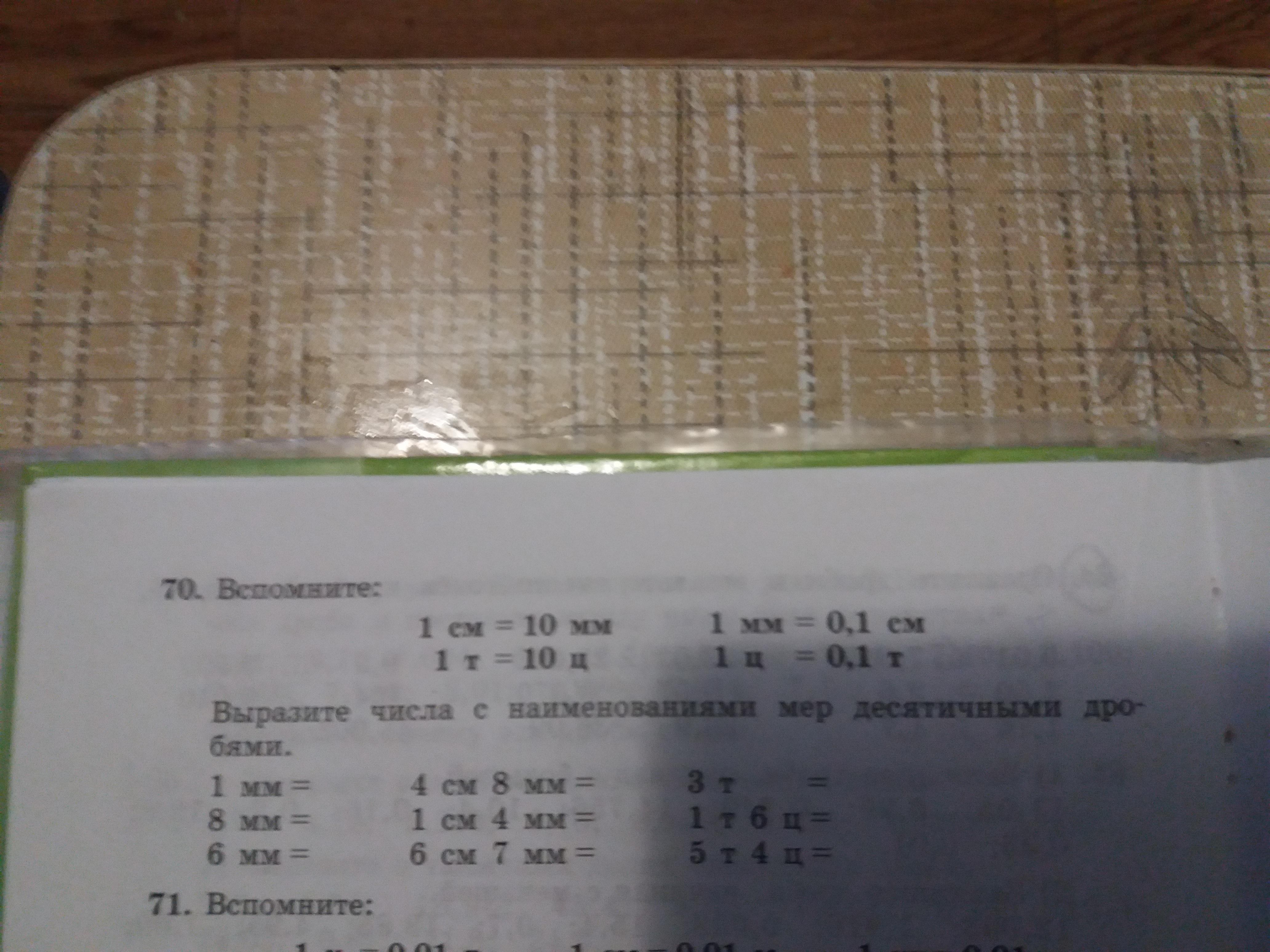 Помогите срочно с математикой. Номер 70. Выразите числа с наименованиями мер десятичными дробями.