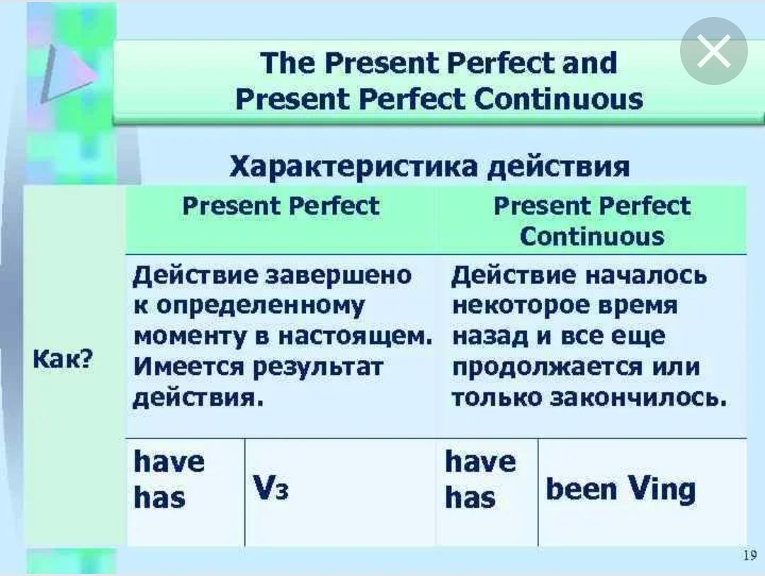 Present Perfect Continuous — когда действие началось в прошлом и совершается сейчас (либо завершилось к настоящему моменту).