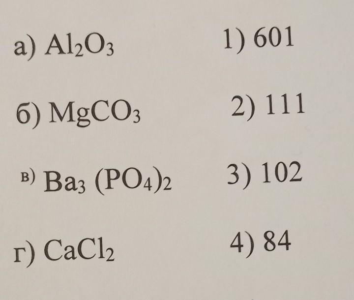 Установіть відповідність між хімічною формулою речовини та її відносною молекулярною масою.