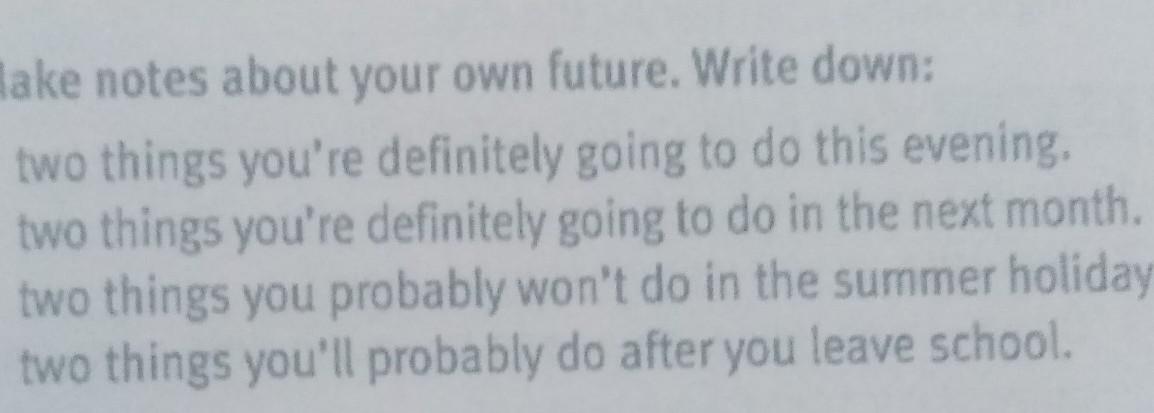 2. То, что ты собираешься сделать в следующем месяце.